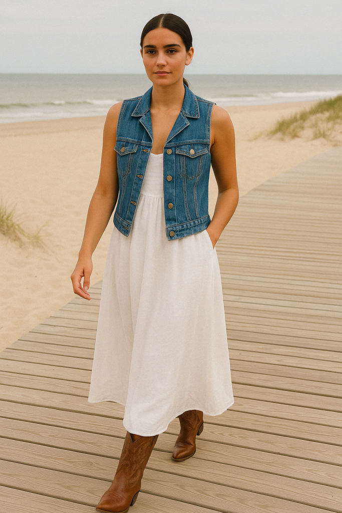 Think flowy linens, sun-faded denim, breezy tunics with a hint of leather. Pair your beach-ready skirt with a cropped western jacket, and swap flip-flops for cute ankle boots. Yee-haw meets ocean breeze.